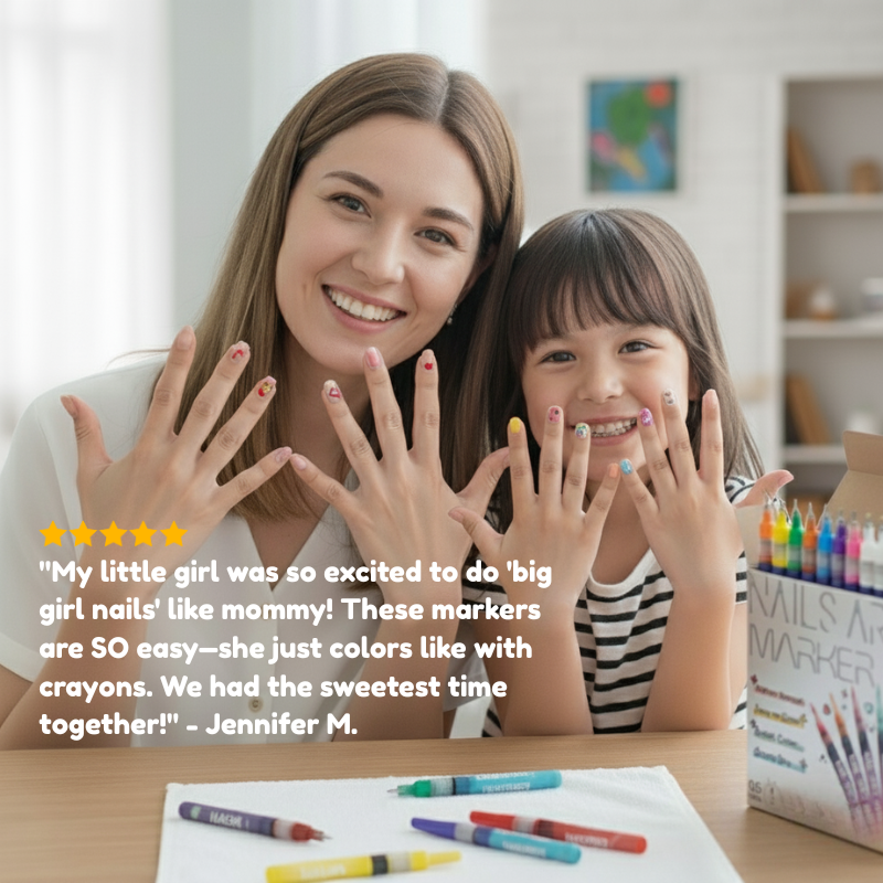 I was worried regular nail polish would be too hard for her, but these markers? She picked them up instantly! Watching her little face light up as she decorated her nails was priceless. Now it's our favorite way to spend quality time together.